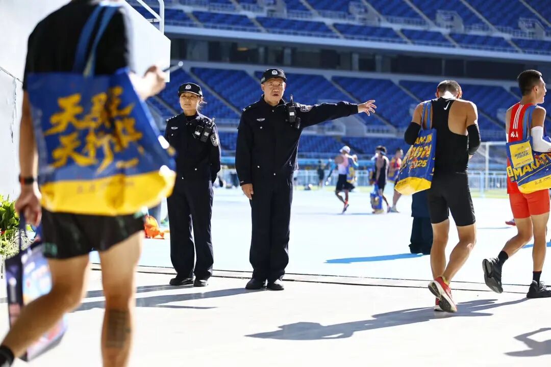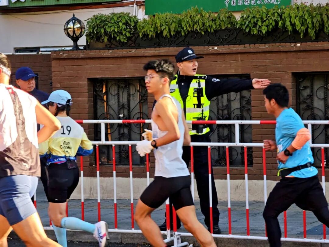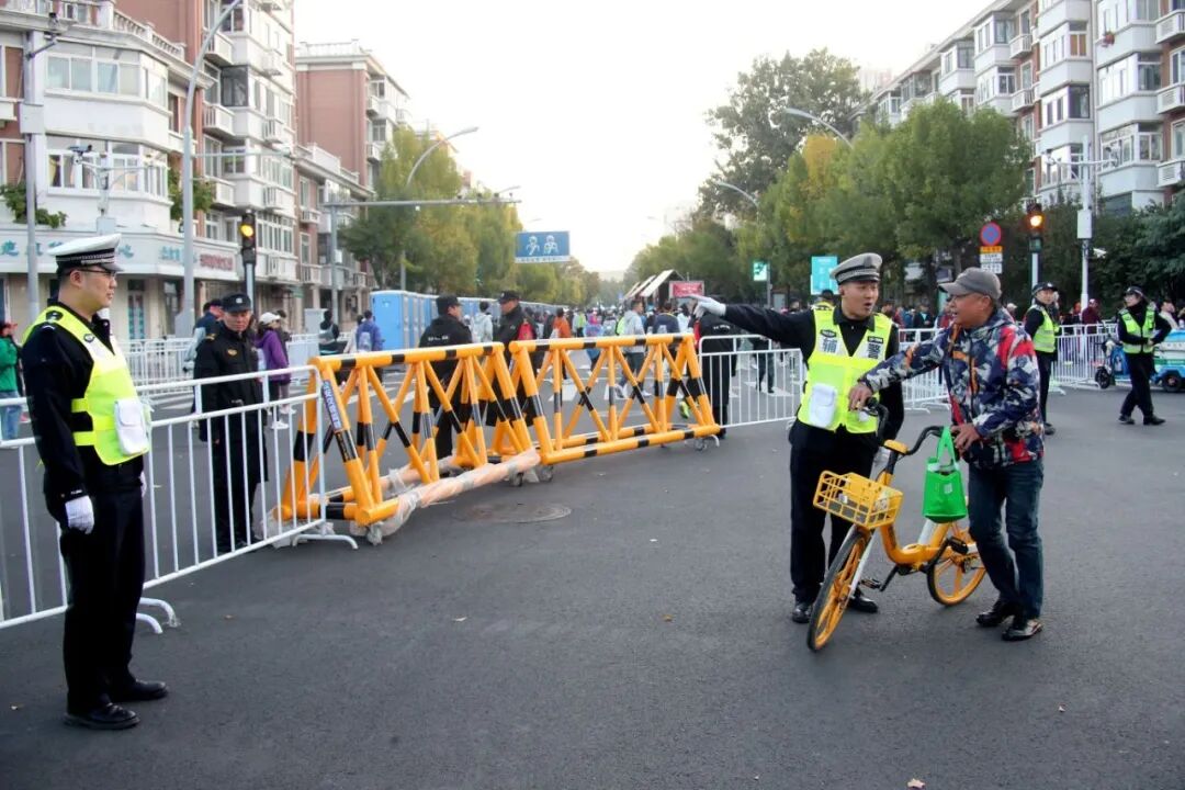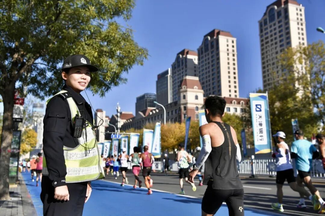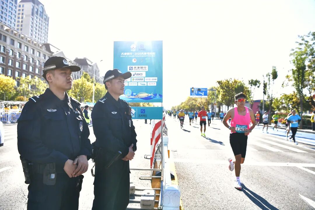 “请观众们不要跨越隔离带,为选手让出通道。”在南开区赛道段,执勤民警温和而坚定地维护着秩序。