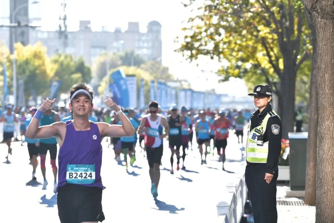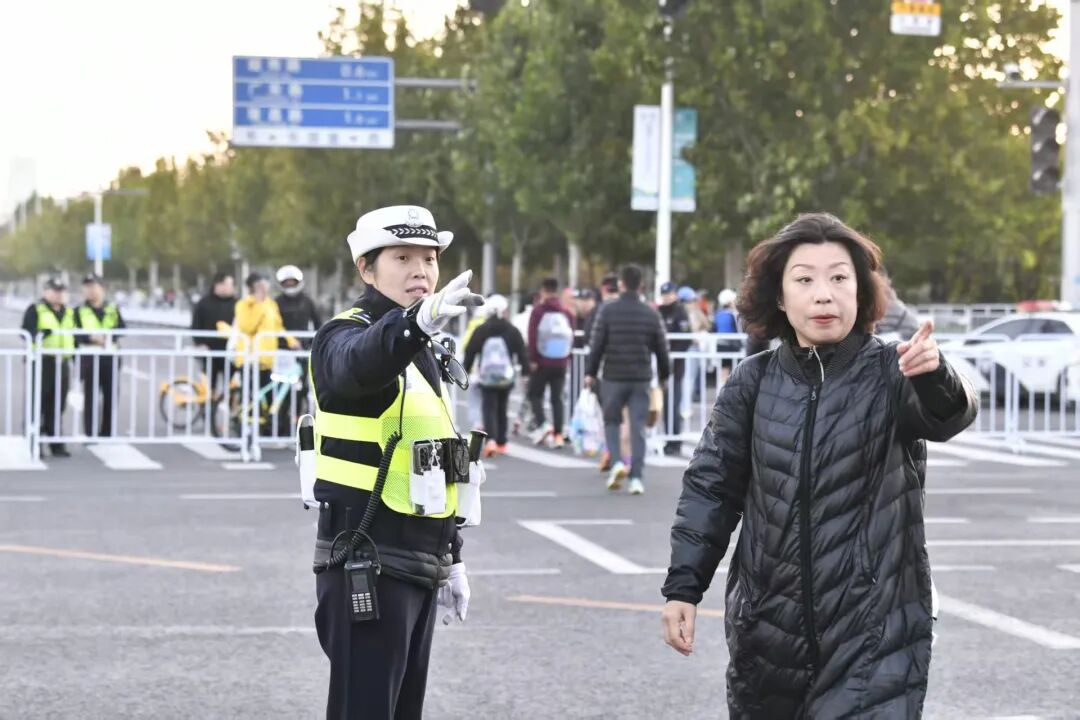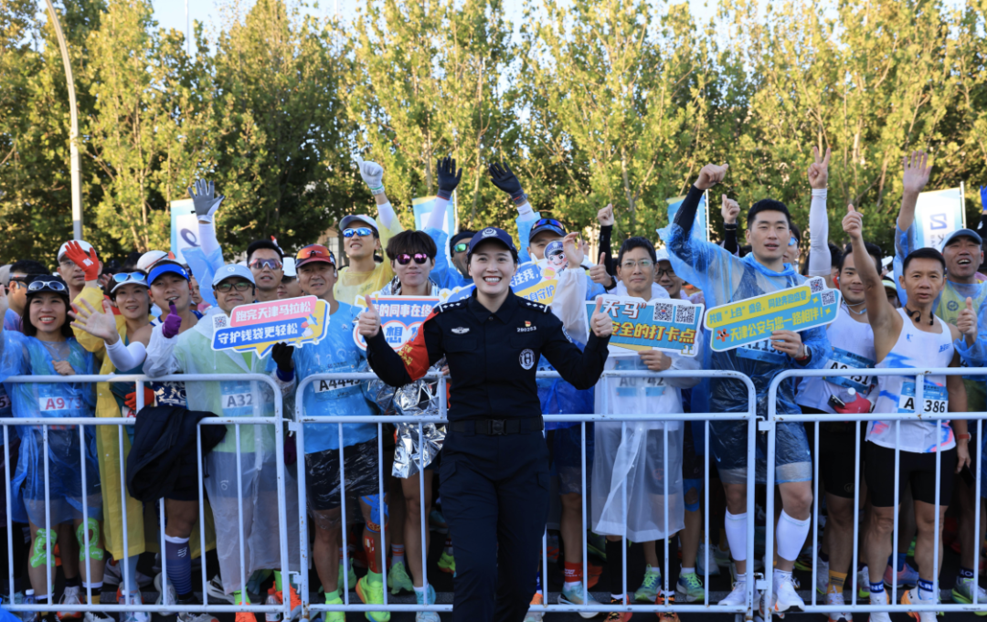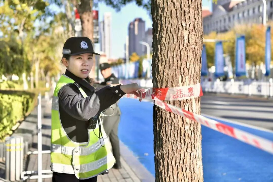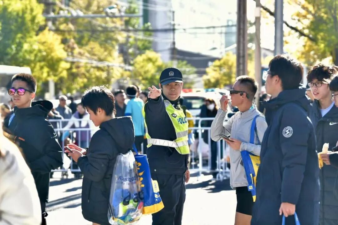 “请观众们不要跨越隔离带,为选手让出通道。”在南开区赛道段,执勤民警温和而坚定地维护着秩序。