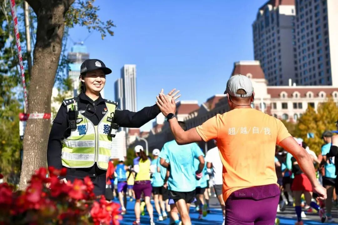“前方500米人流量较大,民警做好分流疏导。”在和平区赛道段,警用无人机实时开展巡查,帮助民警及时了解、处置现场突发情况。