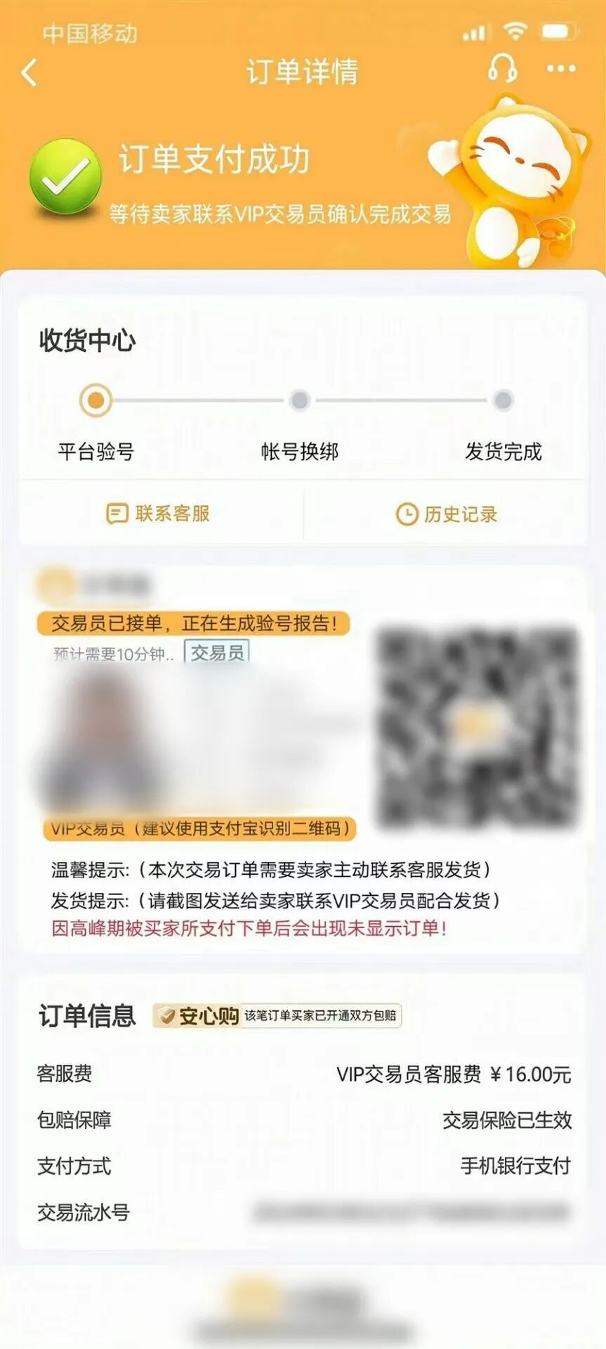 很快,“买家”发来了订单支付成功的截图,告诉小李完成交易需要买卖双方分别向平台转入保证金4000元,自己已经转完了,小李扫描订单截图上的二维码,按照“平台客服”的提示进行缴费就可以了。